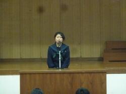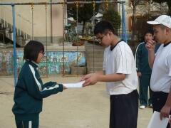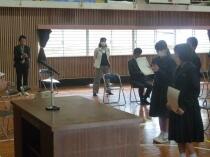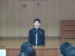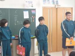 また、1・2年生から3年生へ寄せ書きが贈られ、最後に3年生一人一人が、3年間の思い出と1・2年生へのメッセージを述べていました。