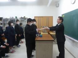 終了後に、本年度5回の校内学力コンテストで優秀な成績を収めた2名の生徒に学校長賞を贈りました。