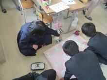 今日は、3・4校時に1年生の技術が行われていました。教頭先生の指導の下、子どもたちは、熱心に「木材を使ったもの作り」に取り組んでいました。
