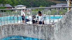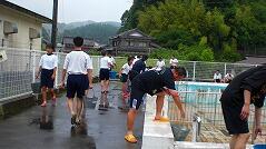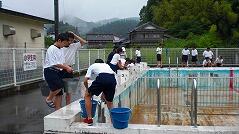 今日は西門川小学校と西門川中学校の全児童・生徒と職員で、1年ぶりにプールの掃除をしました。