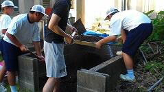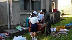 時折雨が降ってくることもありましたが、たわしやデッキブラシを使い、全員でできれいにしました。子どもたちは本当によく頑張りました。