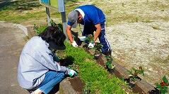今日は門川町民生委員児童委員13名に来ていただいてサルビヤやマリーゴールド、エミネニア、コリウスなどの苗を花壇やプランターに植えました。毎年この時期と秋に植えていますが、今回は先日贈呈していただいた「人権の花活動」の苗も植えました。