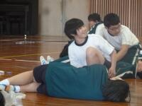 「あなたは、自分の大切な人の命を守れますか」というテーマで、日常的な災害などを中心に、緊急時の対応として、レジ袋を使った三角巾や止血法の実習を中心に