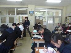 本校では、生徒の学力向上を目的として、基礎学力定着のための期間(約10日間)を、年間に5回設けて学習に取り組む予定です。教科については、国語を皮切りに、5教科を実施します。全学年同じ教科の同一問題に取り組ませる形式で、期間の最初にはプレテスト、期間最終日には学力コンテストを実施し、学力の伸びを見るようにします。生徒の皆さんには、プレテストと比べて大幅な学力の向上が見られるような取組を期待しています!最優秀賞や、優秀賞を目指して頑張って欲しいものです!下の写真は18日の放課後に実施したプレテストの様子の写真です。