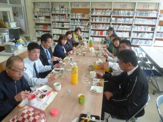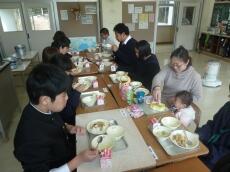 今日は、今年度1回目の小中ふれあい給食がありました。3会場に別れて、小中学生が一緒に会食しました。みんな楽しそうに給食をいただいていました。