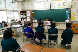 3校時に西門川小の研究授業(道徳)が行われ、中学校からも4名が授業を