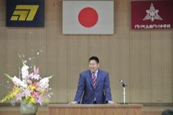 今朝は、全校集会を行いました。今日の担当は、保健体育担当の甲斐一成先生。両親や祖父母への感謝の気持ちと、卒業を控えた3年生、そして進級する