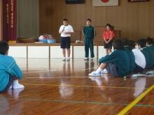 本校の体育担当、甲斐先生は、本年度、兼務で小学校の体育の指導に入ります。