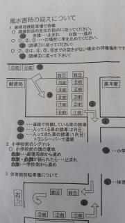 場所と担当する生徒の割振りを行っています。校内だけでなく、近隣の道路や駐車場も行っています。