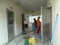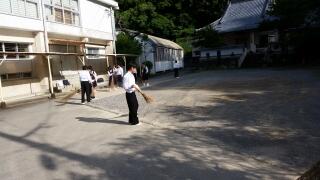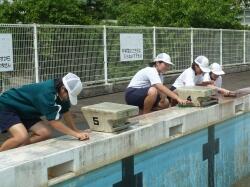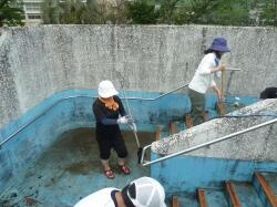 6月から始まる水泳学習を前に、今日は、小中合同によるプール清掃がありました。作業の前に、注意点をしっかり聞いて、力を合わせて作業を行っていました。