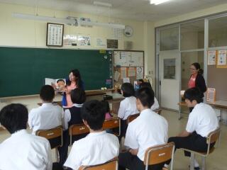 今日は、ALTのローレン先生が来校され、各学級で英語の授業を英語科の眞方先生と一緒に指導されました。