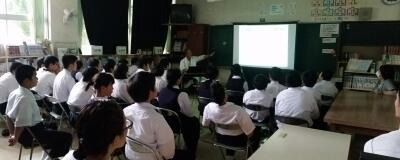 ボランティアとして取り組まれている活動をもとに、お話や映像をとおして子どもたちに「いのちの尊さ」を訴えられていました。この日は小学生・中学生・保護者・地域の方も参加されました。