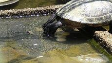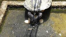 有精卵か無精卵かはまだ分かりませんが、ミドリガメの正式名は「ミシシッピーアカミミガメ」で、要注意外来生物なので川に放すことはできません。西門川中学校は来年3月で閉校します。池にいる金魚(形はフナに近い)、鯉(20cm位)、カメをもらってくださる方がいらっしゃいましたらご連絡ください。
