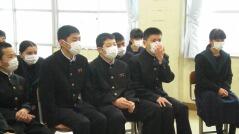 新原教育長からは、「4月から3年生になり、何ができるのかを考えて実際に行動に移して欲しい。自分のふるさと”門川”を中学生のうちに知り、誇りをもって欲しい。」と話されました。