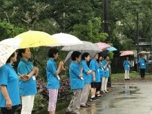 修学旅行生は広島に到着しました。写真を見ると、小雨が降っているようです。