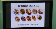 西門川中では3月8日(金曜日)を「お弁当の日」にしています。今朝はその準備をするために、お弁当の作り方を「食育」担当の先生が説明しました。当日どんなお弁当を作ってくるのかとても楽しみです。