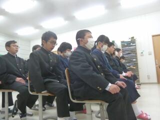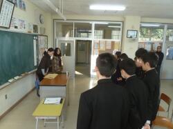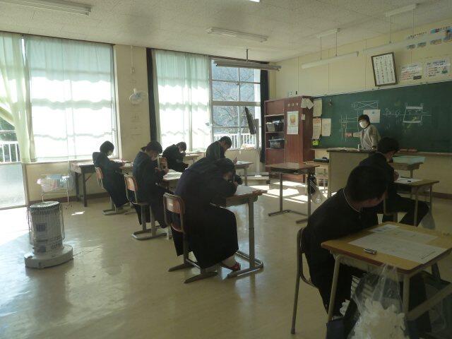 学年末テストが本日終わり、いよいよ明日は、県立高校推薦入学者選抜検査が行われます。その事前指導を昼休みに行いました。