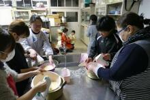 グループごとに、山本先生の指導の手順で協力し合って、実習を行っていました。