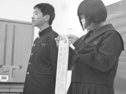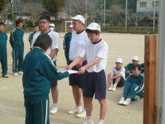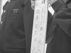 また、1・2年生から3年生へ寄せ書きが贈られ、最後に3年生一人一人が、3年間の思い出と1・2年生へのメッセージを述べていました。