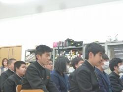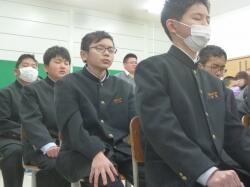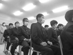 3学期から、月1回、身なりに係る集会を実施しています。今朝は、担当の先生から話があり、男女に分かれて身なりチェックを行いました。