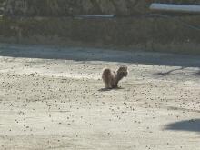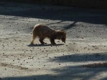 ※運動場に、ひょっこり、「タヌキ」が現れました。えさを探しにきた様子です。