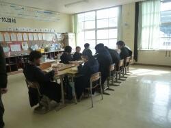 朝8時に到着され、毎週火曜日の朝、実施しています「読み聞かせ」の様子を参観されました。その後、校長室で学校運営の説明と協議を行い、