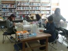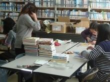 現在、図書館サポーターの方を中心に、読み聞かせ「あおばぶっく」の方々が、連日、お手伝いにきていただき、作業をしてもらっています。