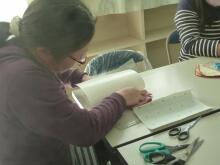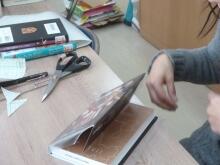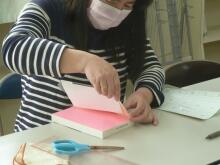 本に合わせて、シートカバーを貼るなど、たいへん細かな作業を行っていただいています。