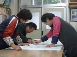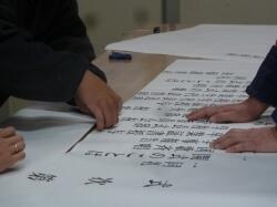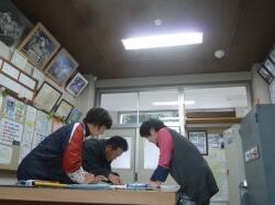 さて、卒業式で使う式次第が、昨年の台風による被害にあい、使えなくなっておりました。近くの小学校の拡大コピー機で印刷したものを、事務室の鶴田先生と用務員の重黒木先生が、切ってつなぐ作業をされていました。途中から教務主任の眞方先生も加わり、細かい作業をしていただき、りっぱに完成しました。ありがとうございます。