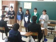 今日は5・6校時に卒業を控えた3年生を対象に、「ピアカウンセリング講座」を実施しました。宮崎大学医学部看護学科の 湯川裕美先生と生徒さん5名が来校され、