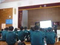 今朝は、1月の全校集会を実施しました。今月の担当は驛教頭先生。子どもたちに夢を追い求めることの大切さを、これまでの体験を交えて話されました。