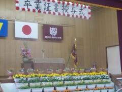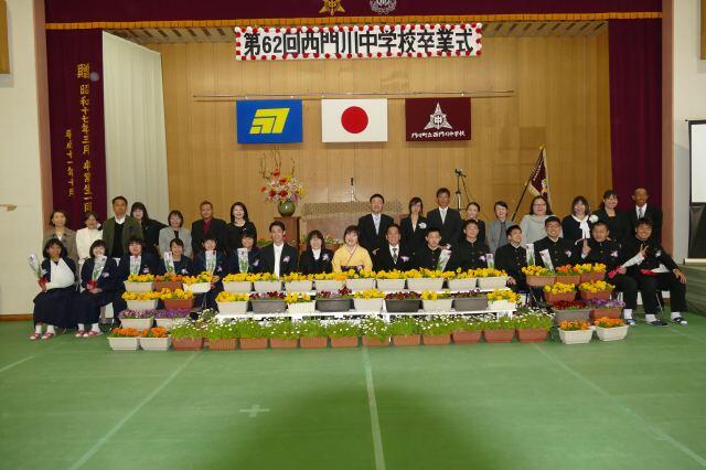 今日は、西門川小学校の卒業式が行われました。外は冷たい小雨が降っていましたが、会場内はきれいな花に囲まれ、温かい雰囲気での卒業式でした。