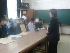 昨夜は、中学校の調理室で家庭教育学級が行われました。寒い夜でしたが、調理室は子どもたちも含めて、たくさんの参加者で賑わっていました。