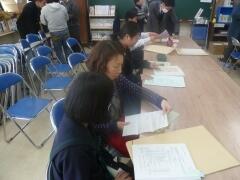 また、読み聞かせボランティアの方々が新しく入った図書の本の製本作業も見学され