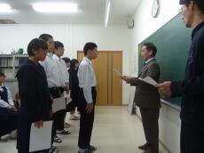 表彰を行い、式終了後には、学習・生活・健康面から担当の先生に指導をしていただきました。