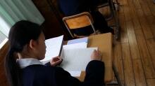 5校時には学級活動が行われ、通知票を担任が一人一人に手渡していました。