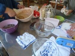 来週24日(火)の夜、家庭教育学級で「お菓子作り」が行われますが、それに向けた準備のため、役員さん3名が午前中、調理室で活動をされました。