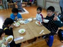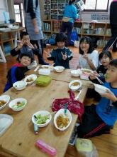 なお、今日は給食がないので、「子どもが作るお弁当の日」として設定し、家庭にも協力をお願いし、子どもたちが自分のコースに合わせて作った弁当を持参しました。
