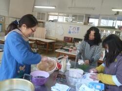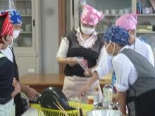 来週24日(火)の夜、家庭教育学級で「お菓子作り」が行われますが、それに向けた準備のため、役員さん3名が午前中、調理室で活動をされました。