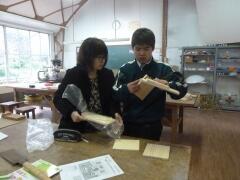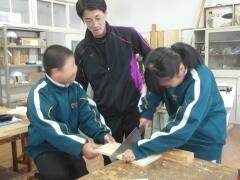 今日は、3・4校時に1年生の技術が行われていました。教頭先生の指導の下、子どもたちは、熱心に「木材を使ったもの作り」に取り組んでいました。