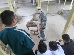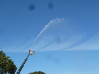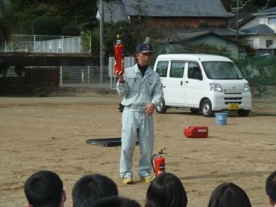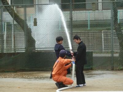 その後、消火器の使い方や代表児童生徒による実習もありました。最後に放水体験もしていただき、充実した避難訓練でした。