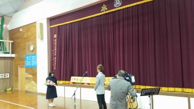 4月にも一度来校してくれましたが、昨日(24日)の夜、延岡市でコンサートがありましたが、急遽、その途中で西門川に寄って歌を届けてくれました。子どもたちは、