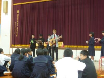 11月には、鑑賞教室でシンガーソングライターの大野勇太さんによるミニコンサートを行い、子どもたちは元気と勇気をもらいました。その他、地域クリーンアップ、