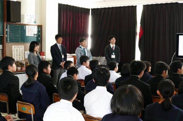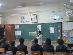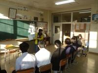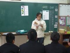 門川町商工会より5名の方々にお越しいただき、3年生へ「落ちないりんご」を一人ずつわたしていただきました。本当にありがたく思っております。