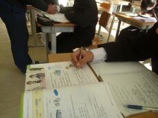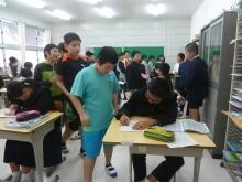 5校時には学級活動が行われ、通知票を担任が一人一人に手渡していました。