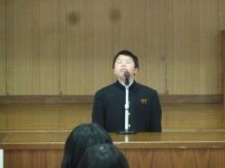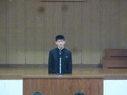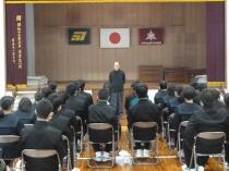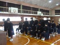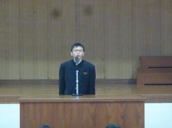 大清掃の後、始業式では、学年代表生徒が、3学期の豊富を述べてくれました。短い学期ですが、しっかりと力を蓄え、4月からの準備をしてほしいと思います。