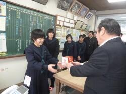 今月26日の私立高等学校入試をかわきりに、入試がスタートします。本日いただいた「りんご」がきっと、大きな力を与えてくれるものと思います。