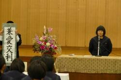 新原教育長先生の祝辞の中で、中学校を卒業し、高校へそして社会に出て行く上で、これからは多くの人たちの中で交わり係っていくことになるので、そのことを念頭にさらに、がんばってください、というお言葉がありました。