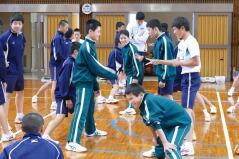 スクールバスで大王谷中学校に行き、体育館での全校集会から参加し、全校生徒に迎えていただきました。
