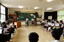 ボランティアとして取り組まれている活動をもとに、お話や映像をとおして子どもたちに「いのちの尊さ」を訴えられていました。この日は小学生・中学生・保護者・地域の方も参加されました。